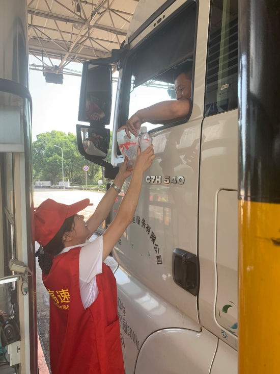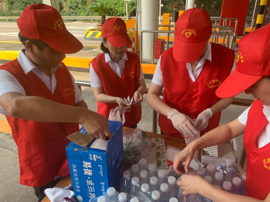 圖為志愿者在準(zhǔn)備防暑物品 “師傅,辛苦啦!這袋子里有礦泉水、風(fēng)油精、人丹一些防暑物品,您拿好,路上帶著以備不時(shí)之需!” “沒想到,你們收費(fèi)站還有這個(gè)服務(wù),這次我要出趟遠(yuǎn)門,說(shuō)不定路上還真能用的上,謝謝呀!”一位接過(guò)禮品袋的老師傅連聲道謝。