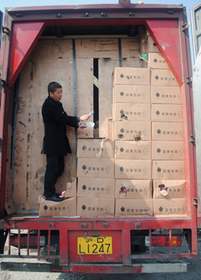 這輛從溫州南入口、車(chē)門(mén)上印著“蔬果特快”軸限40噸的115型大貨車(chē),在凌晨2:25分駛?cè)肱_(tái)州收費(fèi)所,司機(jī)自稱(chēng)運(yùn)送蘋(píng)果。當(dāng)檢查人員打開(kāi)車(chē)廂后門(mén),搬開(kāi)疊放著兩層的蘋(píng)果箱后,發(fā)現(xiàn)廂體另有天地,一個(gè)用鐵條焊成的架子沿著廂壁固定在廂體內(nèi)部,架子上豎著兩大片木板,木板遮擋了廂體六分之五的面積,透過(guò)木板縫隙能看到里面一箱箱的貨物。檢查人員把手伸進(jìn)包裝箱里,拆開(kāi)一看,里面全是電動(dòng)車(chē)的配件。