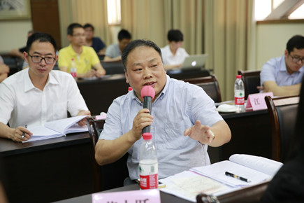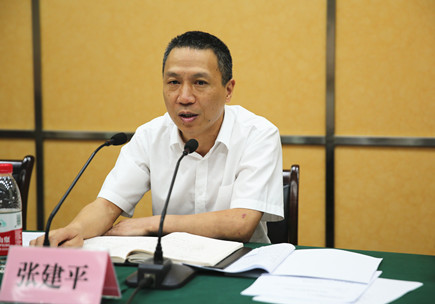 圖為公司副董事長(zhǎng)、總經(jīng)理張建平主持會(huì)議并作匯報(bào)