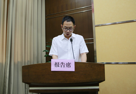 圖為公司副總經(jīng)理董阿林宣讀議案
