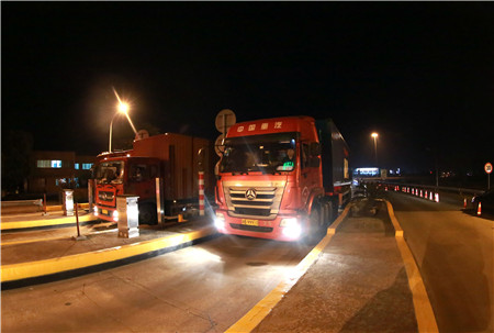 臺(tái)州南、溫嶺西收費(fèi)所,分流9點(diǎn)開始,由于夜間通行貨車居多,每輛需計(jì)重收費(fèi),且夾雜綠農(nóng)車,情況復(fù)雜,分流1個(gè)小時(shí)后出口車道已排成車燈長(zhǎng)龍,壓力巨大。“路口協(xié)警一定要守住第一道防線,不能讓任何車輛進(jìn)入!”富有經(jīng)驗(yàn)的所長(zhǎng)王益民已在車道上與交通協(xié)管員一起指揮疏導(dǎo)交通了。從晚上10點(diǎn)到凌晨6點(diǎn),持續(xù)奮戰(zhàn)8個(gè)小時(shí),在有限的具有稱重能力車道的情況下,臺(tái)州南、溫嶺西共完成了5千多輛車的收費(fèi)工作,流量相比平時(shí)增加一倍。