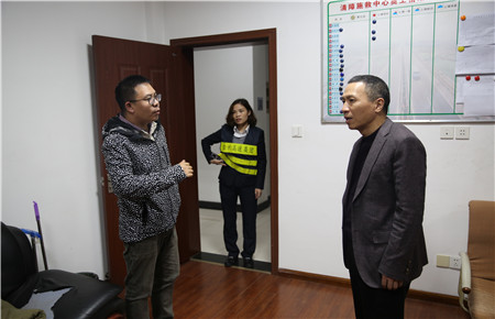 圖為張建平走訪各所、中心慰問(wèn)一線員工
