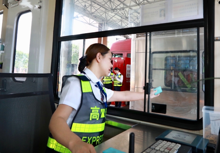 而在對面發(fā)卡的安全總監(jiān)項同富正襟危坐,等待著車子的駛入,“記住動作就忘記微笑,笑起來又忘記要說什么......真有點手忙腳亂的,做好收費員,不容易。”