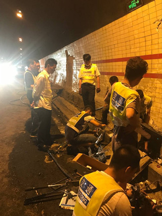 在大家的共同努力下,受損的高壓電纜在20點50分更換完畢,21點05分,寧向隧道恢復正常通行。