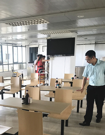 圖為公司副總經(jīng)理董阿林于7月1日到大樓檢查指導食堂整改情況