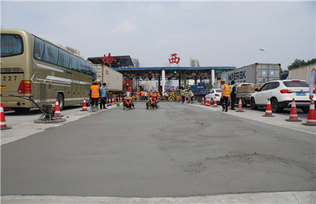 近日,隨著混凝土養護的結束,溫嶺西收費站車道維修工程圓滿完工,收費車道恢復正常通行。此次工程對溫嶺西收費站第四、五車道進行了徹底維修,包括挖除原車道破損路面、注漿、安放鋼筋網、澆筑混凝土、混凝土養護、標線恢復等工序。