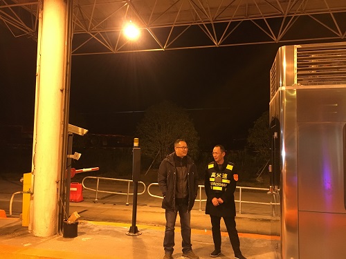 圖為集團副總經理章海峰深夜到收費所檢查 章海峰一到車道就向堅守崗位的員工送上節日的祝福,對他們盡職盡責、樂于奉獻的態度給予充分肯定,隨后詳細詢問了近段時間車流量、節假日通行憑證的使用、收費設施運行、人員安排等情況。 章海峰指出,雖然沿線路段流量較同期有所下降,但在節假日和春運雙重任務前,還要面臨各種不確定因素,全體人員依然不能掉以輕心,要善于分析通行過程的異常現象,并早作應急預案;對長途客車和危化品車輛要嚴格把關,認真執行指揮中心的通行時間;春節期間氣溫起伏大,特別在后期受冷空氣影響有降溫天氣,要做好保暖工作,注意出行安全。 章海峰祝福大家過個舒心、安全的中國年! 夏蓮萍