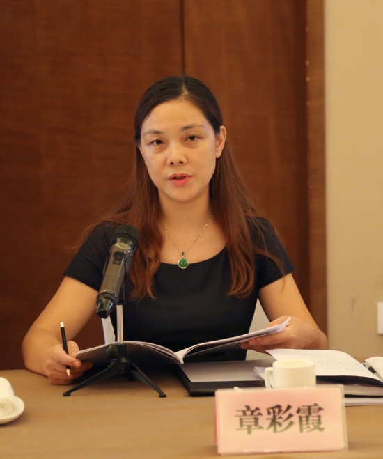 圖為公司財務總監章彩霞宣讀財務報告
