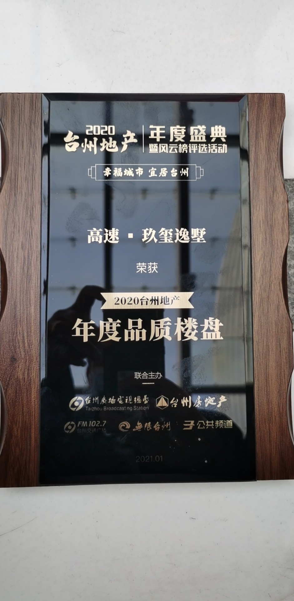 2021年1月19日下午,由臺州廣播電影電視集團聯合臺州市房地產業協會共同舉辦的2020臺州地產年度盛典暨臺州地產風云榜,在全城熱矚下重磅舉行。高速房產玖璽府·逸墅項目榮獲“2020臺州地產年度品質樓盤”榮譽稱號。