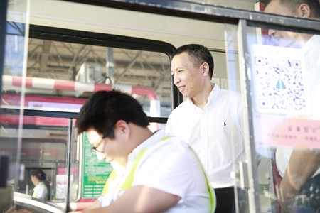 圖為集團副董事長、總經理張建平在溫嶺西收費崗亭檢查