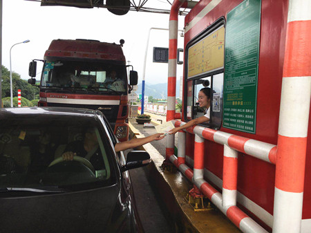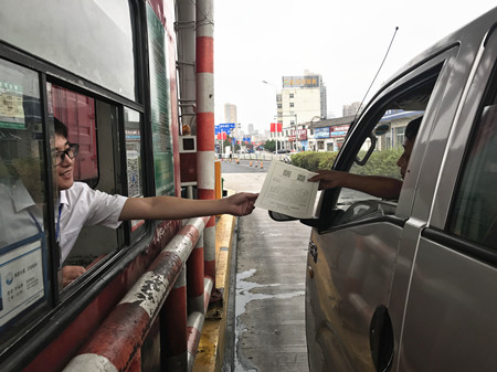圖為臺州南收費(fèi)所發(fā)放現(xiàn)場