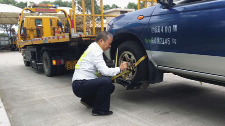 圖為工作人員參加清障車托舉輪胎拖曳比賽 早在節前,施救中心就未雨綢繆,全面檢查中心六輛清障車,主動聯系廠方并要求派專員上門服務。其中對清障車輛的液壓系統進行了檢查維護,添加了液壓油,更換了漏的液壓泵,修理了滲油的油缸和油管接頭,對啟動困難的清障車輛更換了電瓶和馬達,對水溫過高的發動機更換了電子風扇,并對水箱進行清洗,確保節日運行性能的良好,杜絕了一切安全隱患。 今年國慶、中秋雙節合并使得假期更長,并且黨的十九大也在10月份召開。為此,施救中心高度重視,不僅全面檢查清障車輛,而且召集全體人員廣泛聽取應急應對意見,強調要頂住壓力,克服困難,團結一心,打贏這一次艱苦的攻堅戰。中心要求管理人員加強駐勤值班,及時掌握路況信息。一線人員不請假,不調休,加班加點隨時待命,聽候指揮,同時采取就近用餐、提前布控等措施,為保暢道路做好萬全準備。
