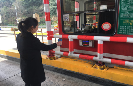 圖為工作人員現(xiàn)場(chǎng)測(cè)試掃描距離 據(jù)悉,使用該項(xiàng)支付方式,司機(jī)只要在到達(dá)收費(fèi)所后,將高速公路通行卡交給收費(fèi)員,然后打開(kāi)手機(jī)支付寶付款碼頁(yè)面,對(duì)準(zhǔn)安裝在收費(fèi)亭外側(cè)的掃描設(shè)備,成功支付后,欄桿便會(huì)自動(dòng)抬桿放行。對(duì)于較大的貨車(chē),收費(fèi)員將使用手動(dòng)掃描儀進(jìn)行操作。 移動(dòng)支付一旦開(kāi)通,不僅將有效解決司乘人員出行時(shí)現(xiàn)金不足問(wèn)題,還將破解收費(fèi)過(guò)程中存在的假鈔和零鈔不足等難題,也為收費(fèi)員省去了核對(duì)現(xiàn)金數(shù)額、辨別錢(qián)幣真?zhèn)巍⒄伊愕墓ぷ髁浚M(jìn)一步提升高速公路通行效率和服務(wù)水平。 項(xiàng)寅曉 陳瑩