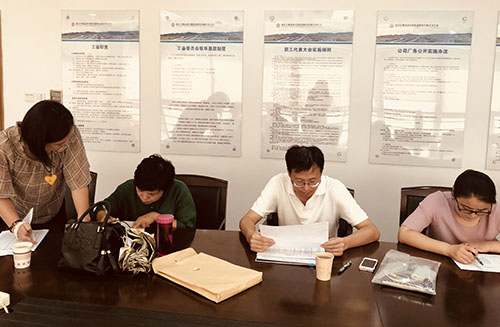 圖為檢查組查閱原始檔案 在檢查過程中,檢查組對集團公積金繳存情況的規范性給予肯定,但同時也指出一些存在的問題。下一階段,人力資源部將針對檢查中發現的問題,認真分析原因,研究對策,制定方案,按照要求在8月30日前全面完成整改落實工作。 人力資源部