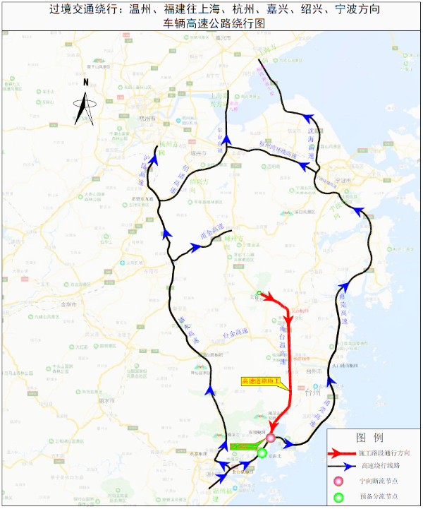 在甬臺溫高速寧波方向南塘樞紐進行斷流,所有車輛改走甬莞高速;甬莞高速南塘樞紐轉甬臺溫高速寧波方向匝道關閉;臺金高速水洋樞紐轉甬臺溫高速寧波方向匝道關閉;甬臺溫高速溫州方向吳岙樞紐轉上三高速上虞方向匝道關閉;甬臺溫高速溫州方向、上三高速三門方向保持通行,部分路段借用對向車道通行。