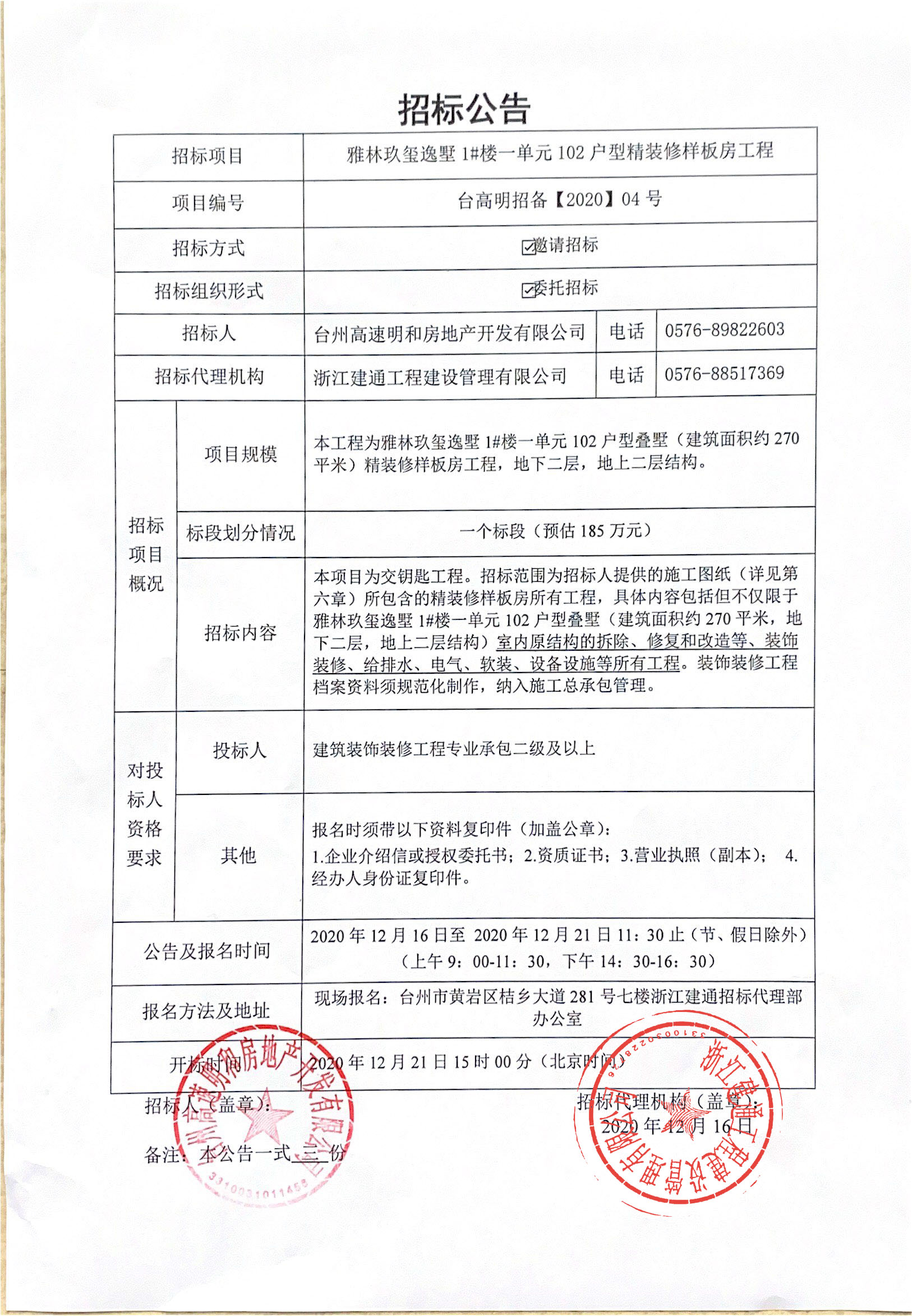 雅林玖璽逸墅1#樓一單元102戶型精裝修樣板房工程招標(biāo)公告