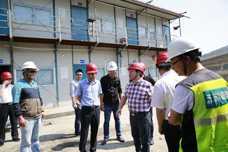 圖為集團副董事長、總經理張建平檢查內環路8#立交民工生活區