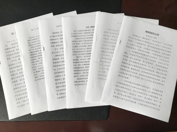 圖為集中學(xué)習(xí)現(xiàn)場 每月月度例會上,市政公司組織員工有針對性地學(xué)習(xí)集團(tuán)和市政公司的制度與流程。該公司制作了一本制度匯編,并分發(fā)到人手一本,要求員工認(rèn)真學(xué)習(xí),熟悉公司辦事流程和規(guī)章,工作中做到照章辦事,增強(qiáng)員工的制度觀念。 5月月初,市政公司組織開展讀書思廉活動,要求每位員工讀一本勤政廉政書籍,并撰寫一篇讀書心得。從一篇篇心得體會文章中,看到有從歷史廉政小故事切入的,也有從習(xí)近平總書記的新時代中國特色社會主義思想和十九大報告中領(lǐng)悟道理的,字字流露了真情實(shí)感,句句體現(xiàn)出真切感悟,真正做到了學(xué)有所悟,營造了良好的學(xué)廉思廉的氛圍。